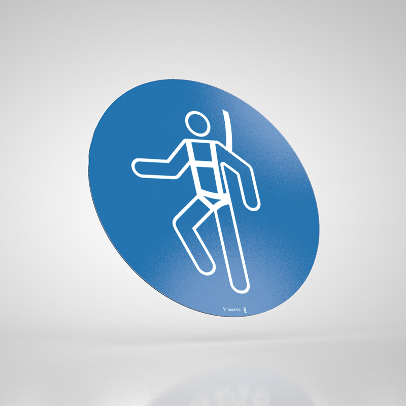 Naklejka Podłogowa BHP: Nakaz Stosowania Szelek Bezpieczeństwa
