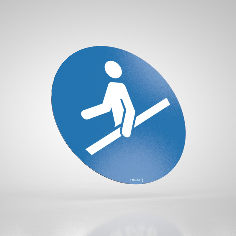Naklejka Podłogowa BHP: Nakaz Używania Poręczy