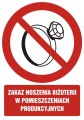 Naklejka Podłogowa BHP z Opisem: Zakaz Noszenia Biżuterii w Pomieszczeniach Produkcyjnych PU022O